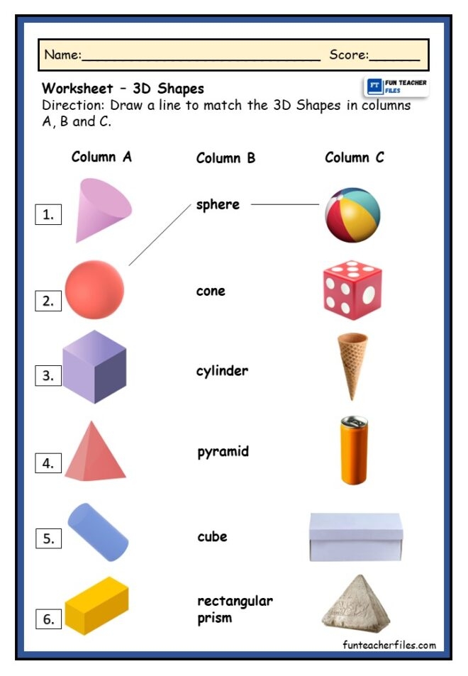 3D Shape Worksheet Fun Teacher Files
