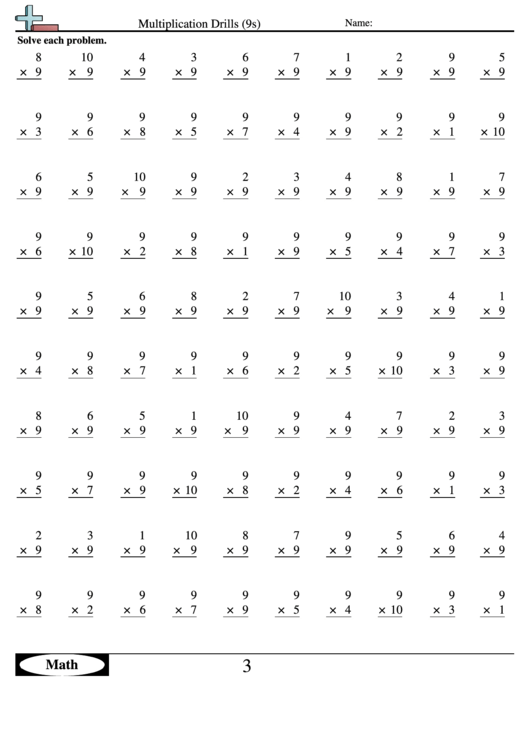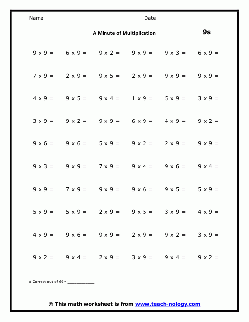 9s multiplication worksheet