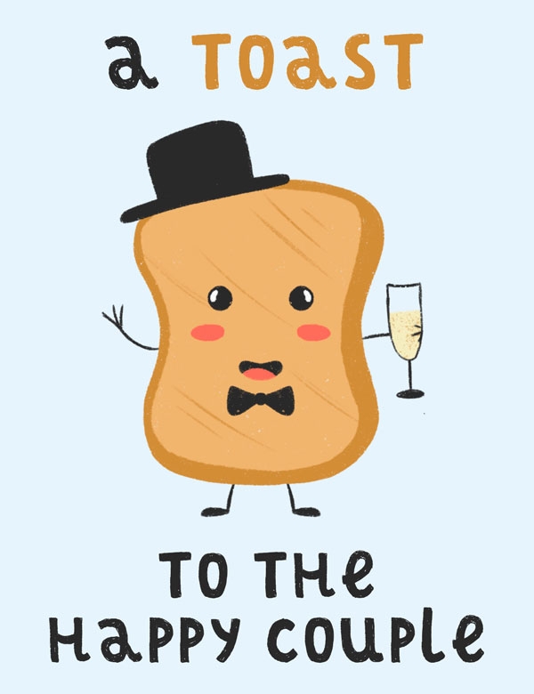 Toast Happy Couple Wedding Or Anniversary Cutie Kawaii Letterpress