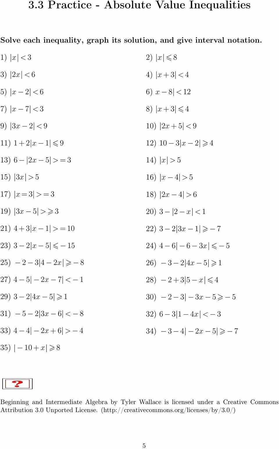 Absolute Value Equations Worksheets