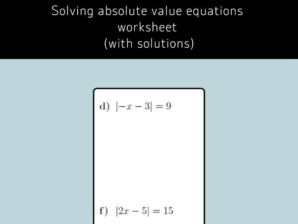 When it comes to solving mathematical equations, absolute value equations are an essential concept to understand. These equations involve finding the solutions for variables within absolute value symbols. To practice and master this concept, absolute value equations worksheets are a valuable resource for students of all levels.