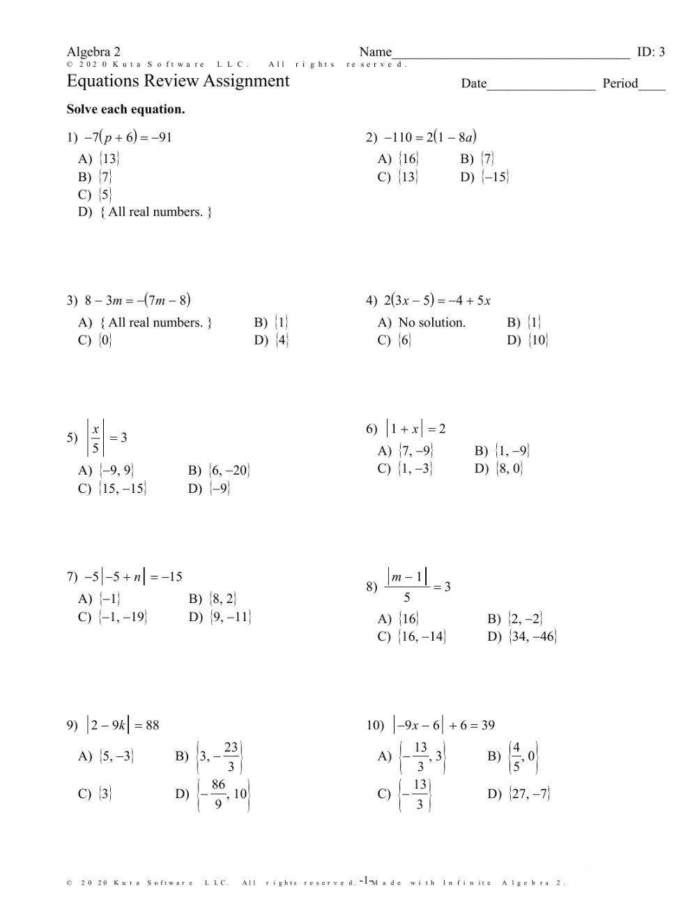 One of the key benefits of using absolute value equations worksheets is the opportunity for students to practice solving a wide range of equations. From basic equations with one absolute value symbol to more complex equations involving multiple absolute value symbols, these worksheets cover a variety of scenarios.