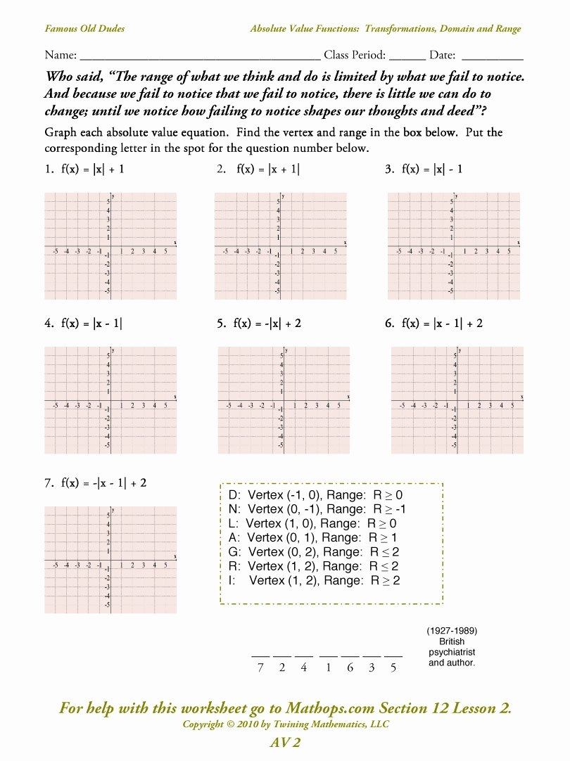 In conclusion, absolute value function worksheets are a valuable resource for students to practice and master the concept of absolute value. By working through these worksheets, students can improve their problem-solving skills, gain confidence in working with absolute value, and receive targeted support and feedback from their teachers. Incorporating these worksheets into lessons can help students develop a strong foundation in mathematics and prepare them for more advanced mathematical concepts in the future.