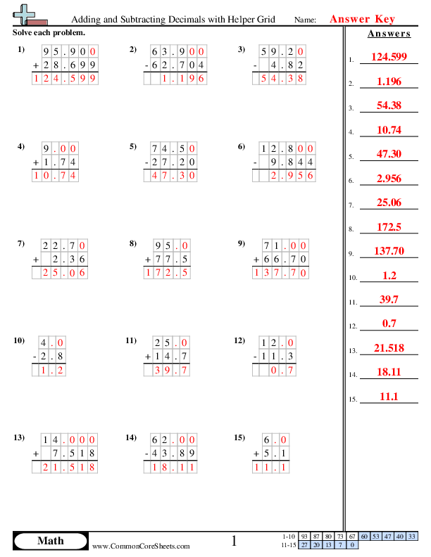 These worksheets typically contain a variety of decimal addition and subtraction problems that range in difficulty, allowing students to practice and reinforce their understanding of decimal operations. By consistently practicing with these worksheets, students can build confidence in their abilities and improve their accuracy in decimal calculations.