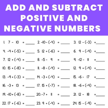 Additionally, worksheets for adding and subtracting positive and negative numbers can be tailored to meet the needs of individual students. Teachers can provide different levels of difficulty based on each student’s abilities, ensuring that all students are appropriately challenged. This customization allows students to progress at their own pace and feel successful as they master new skills.