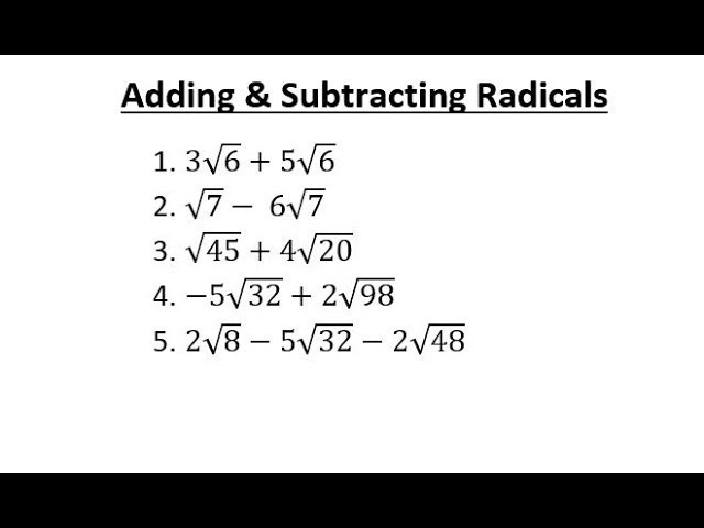A adding subtracting radicals worksheet is a valuable tool for students to practice and reinforce their understanding of these operations. These worksheets typically contain a variety of problems that require students to add and subtract radicals of different degrees and coefficients.