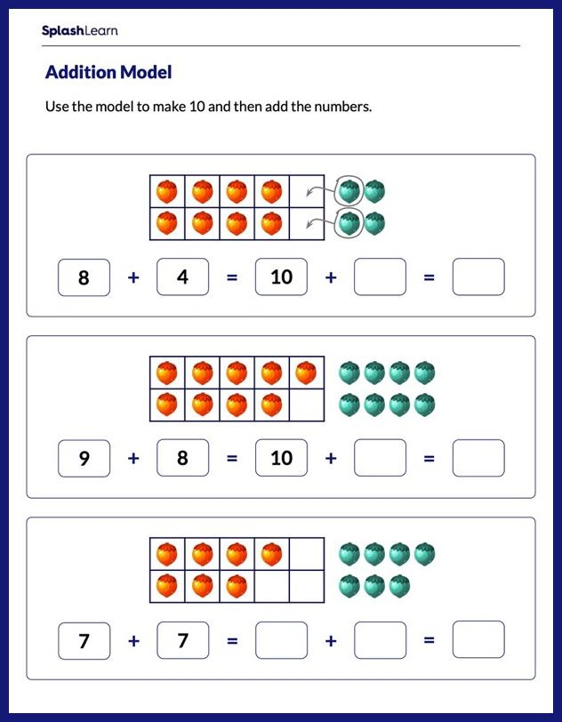 Adding to ten worksheets typically include a series of addition problems where students are required to add two numbers together to reach a sum of ten. These worksheets can vary in difficulty, with some featuring simple addition problems with single-digit numbers, while others may involve larger numbers or more complex equations.