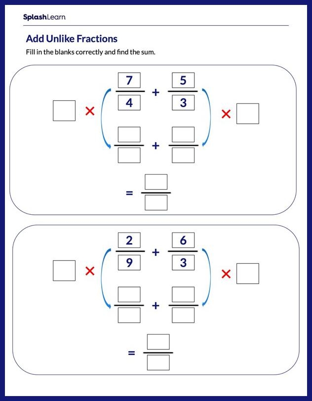 By using worksheets specifically designed for adding unlike fractions, students can learn to find a common denominator, add the numerators, and simplify the resulting fraction. These worksheets provide a structured way for students to practice and reinforce their understanding of the addition of fractions.