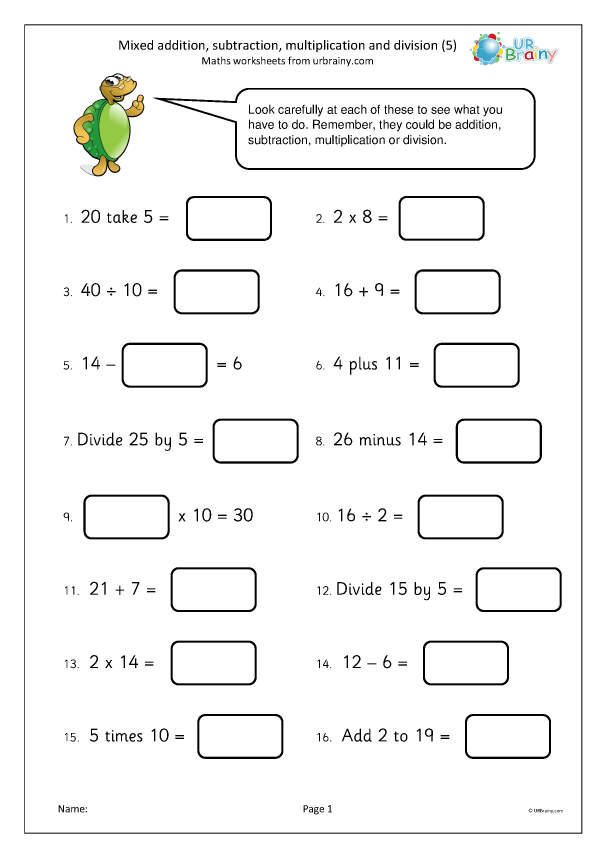 Addition Subtraction Multiplication and Division Worksheets