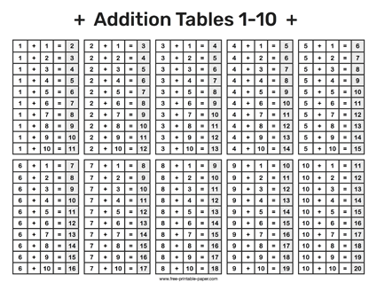 Printable Addition Table Free printable paper
