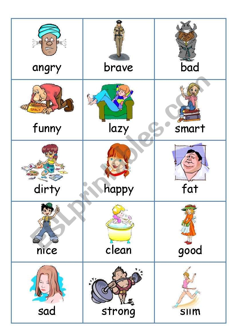 Here are some common adjectives for describing a person in Spanish that you can create printable flash cards for: