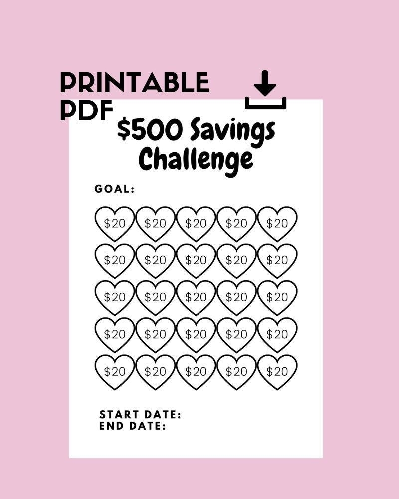 Money Saving Challenge Printable Save 500 Savings Challenge Budget
