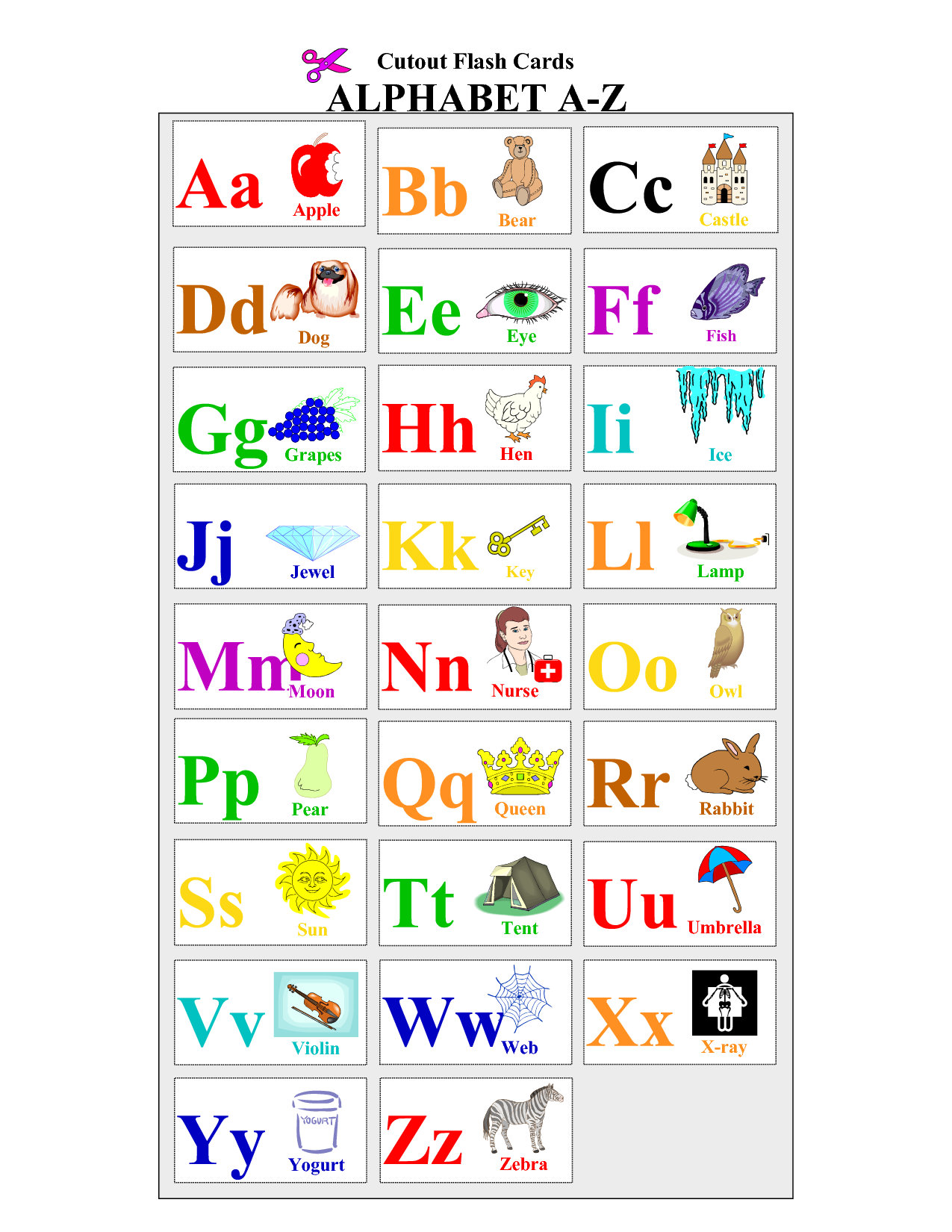 Each card features a different letter of the alphabet, along with a corresponding image that begins with that letter. This visual aid helps children make connections between letters and their sounds, making it easier for them to remember and recognize each letter. The cards can be printed on cardstock for durability and laminated for repeated use.