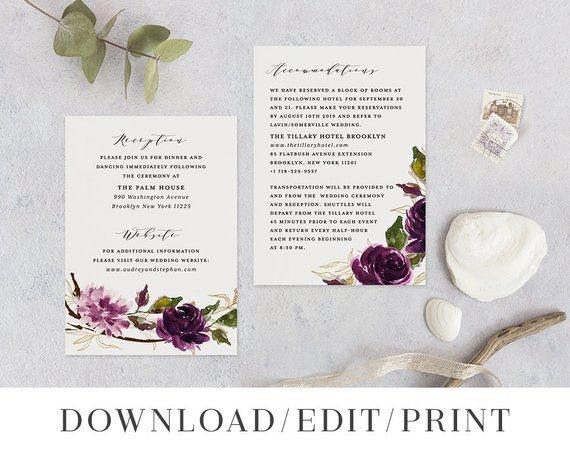 Wedding Details Card Template Printable Information Card Instant