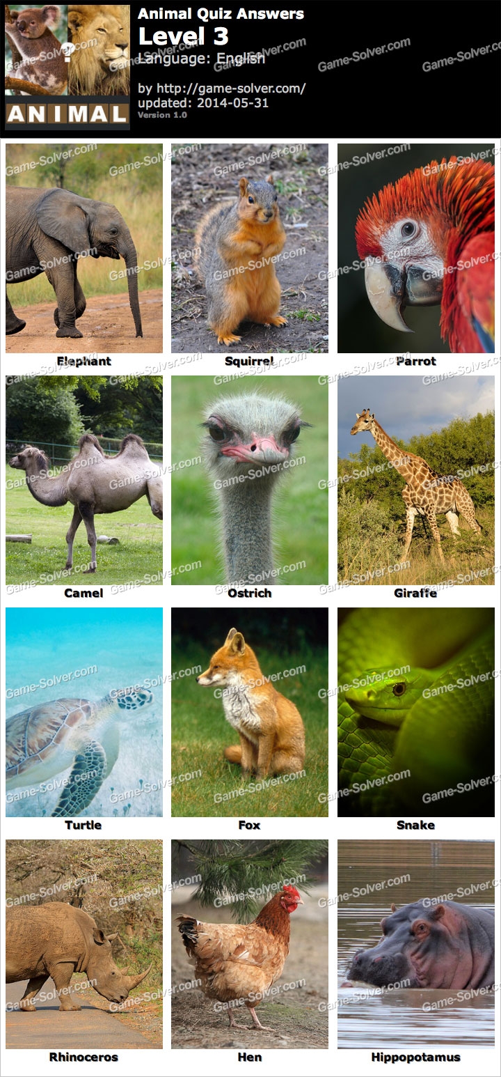 Animal Picture Quiz With Answers Printable