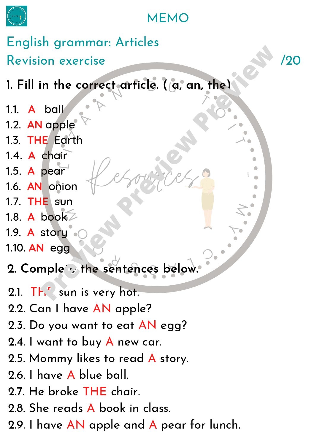 Articles Grammar Worksheet