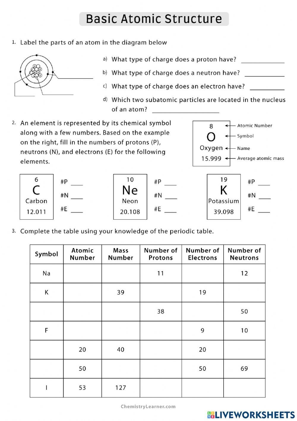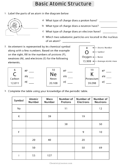 Understanding the atomic structure is fundamental in the study of chemistry. Atoms are the building blocks of matter, and their structure determines the properties of elements and compounds. To help students grasp the concept of atomic structure, worksheets with answer keys are a valuable resource. These worksheets provide practice problems and solutions to test the knowledge and understanding of students.
