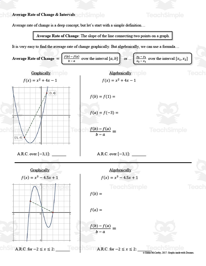 These worksheets typically consist of a series of questions that require students to calculate the average rate of change for various scenarios. By working through these problems, students can improve their understanding of this important mathematical concept and develop their problem-solving skills.