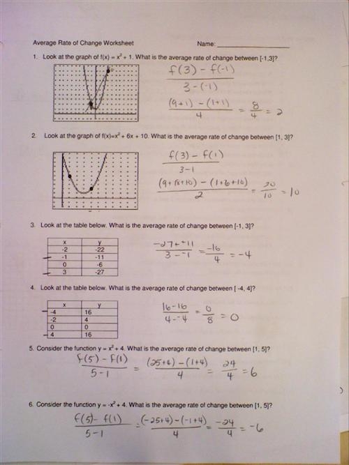 When it comes to studying math, one of the key concepts that students often come across is the average rate of change. This concept is crucial in understanding how quantities change over a given interval of time or distance. To practice and reinforce this concept, teachers often provide students with worksheets that contain problems related to average rate of change.