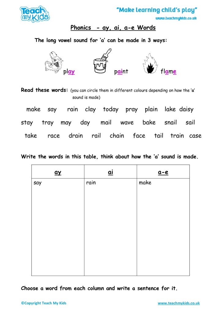 Some worksheets also include matching activities, where students match words with the correct pictures that represent them. This not only helps students practice their ay ai sounds but also reinforces vocabulary and reading comprehension skills.
