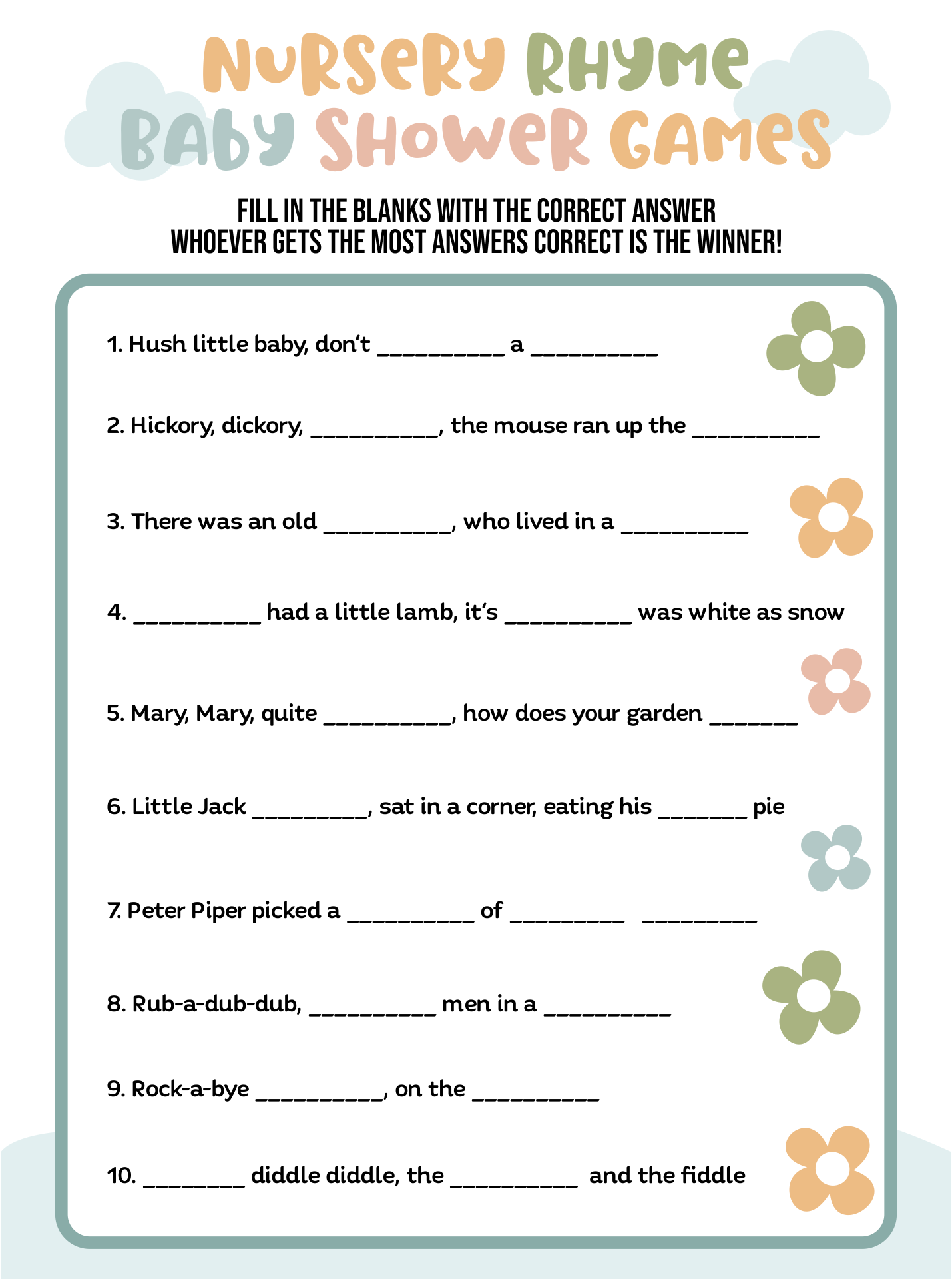 Free Printable Baby Shower Nursery Rhyme Games 60 OFF