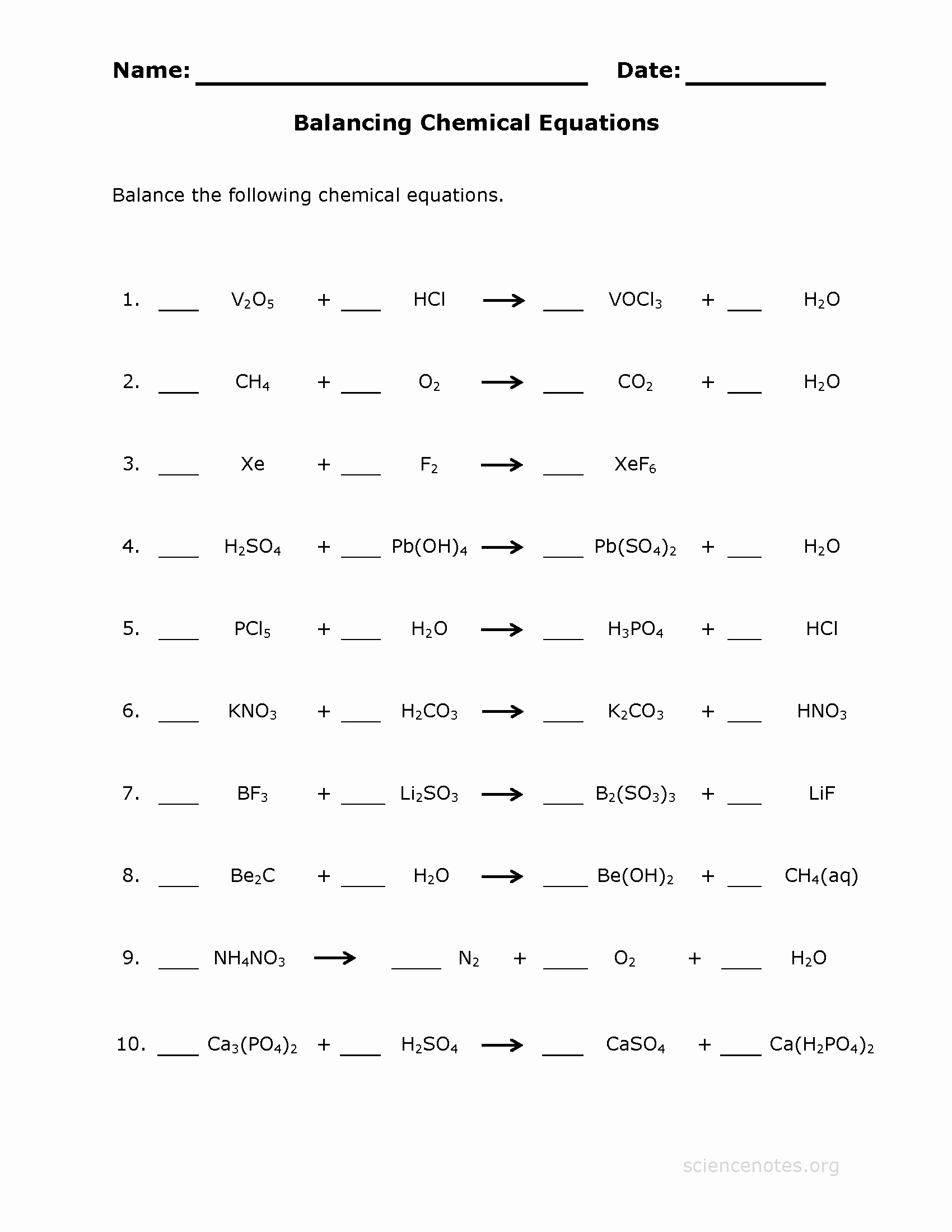 One way to practice balancing equations is by using worksheets. These worksheets typically provide students with a series of unbalanced chemical equations that they must solve by adjusting the coefficients. By doing so, students can test their understanding of the concept and improve their problem-solving skills.