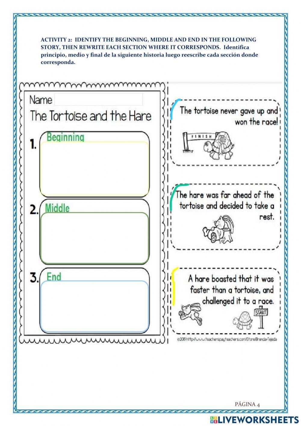 The beginning of a story typically introduces the main characters, setting, and the initial conflict or problem. Students can use the worksheet to identify these elements and describe how they set the stage for the rest of the story. The middle of the story is where the action and tension build, leading up to the climax or turning point. Students can analyze the events that occur in the middle section and how they contribute to the development of the plot.