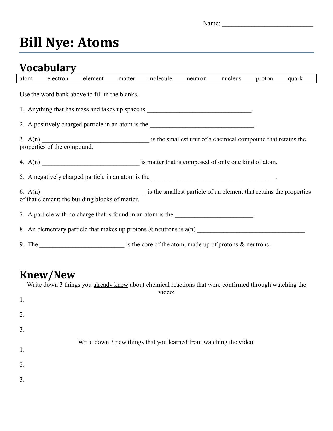 Overall, the Bill Nye “Atoms and Molecules” worksheet provides students with a fun and interactive way to reinforce their understanding of basic chemistry concepts. By engaging with the material through questions, activities, and experiments, students can deepen their knowledge of atoms and molecules and develop a greater appreciation for the science that governs the world around them.