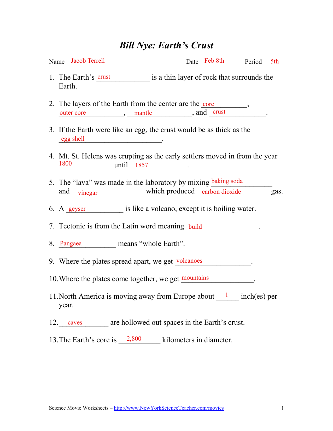 In conclusion, the Bill Nye Earth’s Crust worksheet is a valuable tool for students to learn more about the Earth’s crust and the geological processes that shape our planet. By completing this worksheet, students can deepen their understanding of plate tectonics, rock formation, and the dynamic nature of the Earth’s crust. Through engaging activities and thought-provoking questions, students can explore the fascinating world of geology and gain a greater appreciation for the forces that shape our planet.