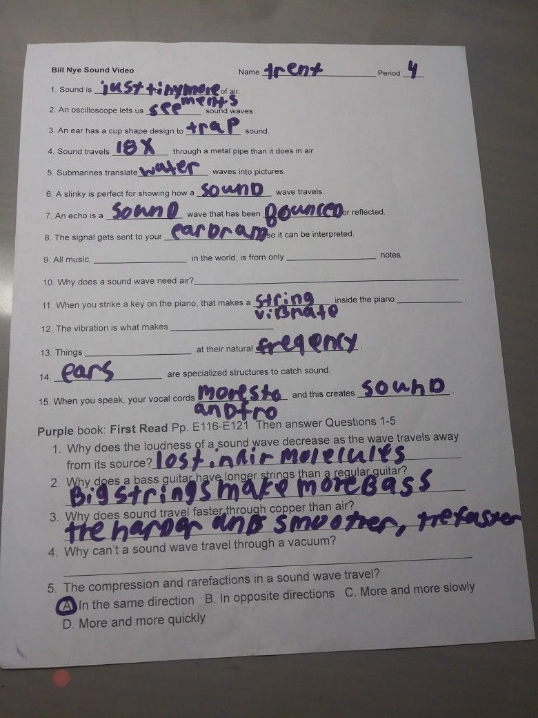 Bill Nye Sound Worksheet