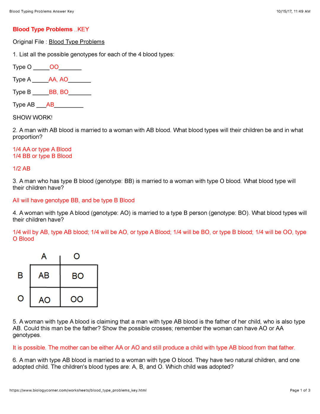 Blood Typing Practice Worksheet