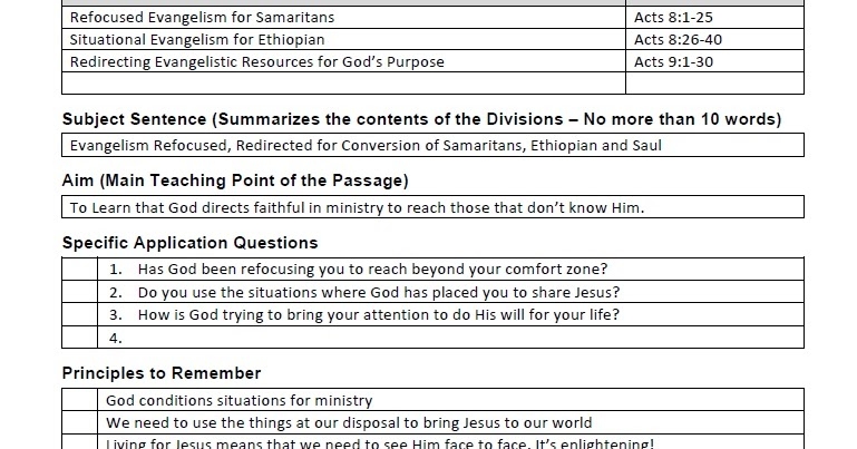 The BSF Homiletics Worksheet PDF covers a range of essential elements for effective sermon preparation and delivery. From developing a central theme and key points to incorporating relevant illustrations and applications, this worksheet provides a step-by-step guide to creating impactful messages that resonate with your audience.