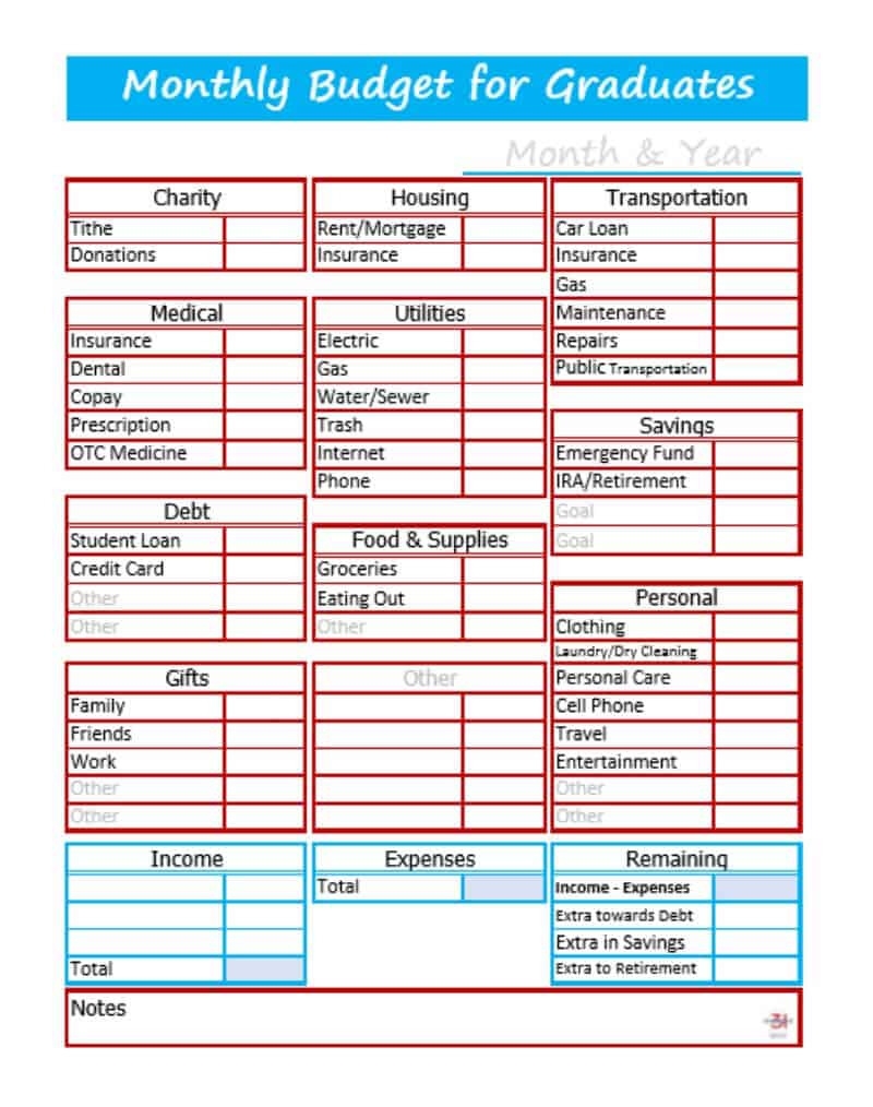 Here is an example of a simple budget worksheet that you can use to get started: