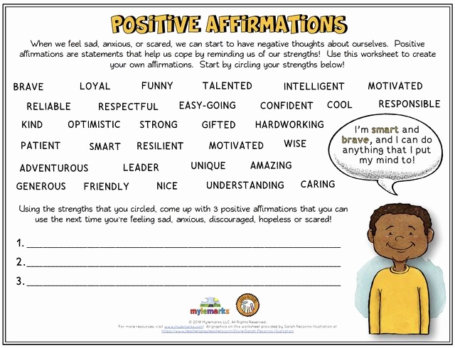 Another type of self-esteem worksheet is the “Affirmation Worksheet.” This worksheet encourages individuals to write down positive affirmations about themselves and repeat them daily. Affirmations can help rewire the brain to think more positively about oneself and boost self-esteem over time.