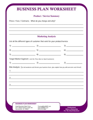 business plan worksheet
