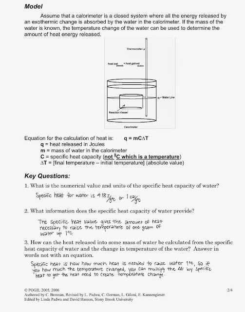 The Calorimetry Worksheet Answers POGIL is a valuable resource for students to practice and test their understanding of calorimetry concepts. It provides a series of questions and problems that require students to apply their knowledge of heat transfer, specific heat capacity, and temperature changes in chemical reactions.