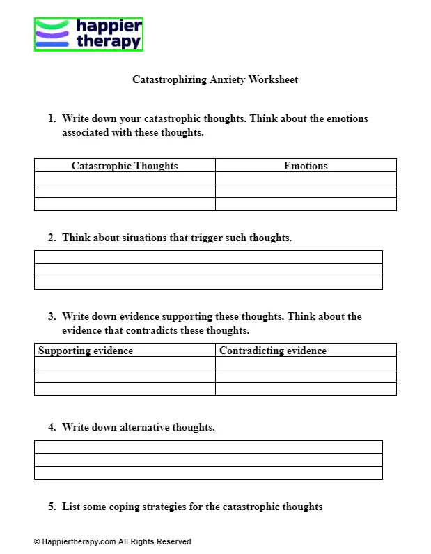 By completing a catastrophizing worksheet on a regular basis, individuals can gradually retrain their thinking patterns and develop more positive and realistic ways of coping with challenging situations.
