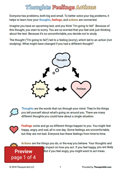 CBT For Kids Thoughts Feelings Actions Worksheet Therapist Aid