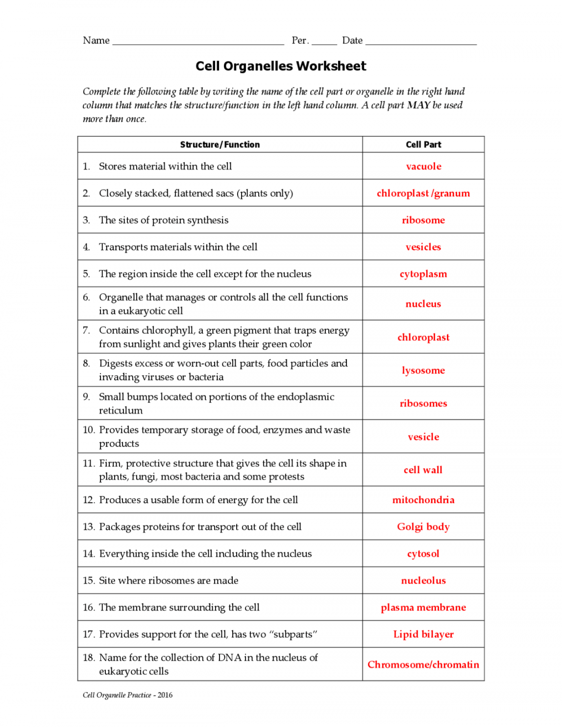 50 Cell Organelles Worksheet Answer Key Chessmuseum Template Library