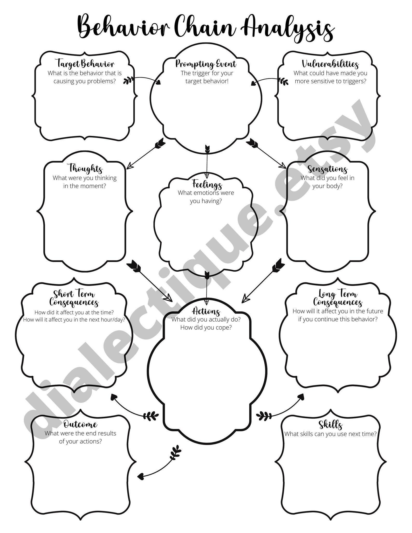 DBT is a type of therapy that focuses on teaching individuals how to regulate their emotions, improve relationships, and cope with stress in healthy ways. The Chain Analysis worksheet is a practical tool that can be used in therapy sessions or on one’s own to better understand the patterns of behavior that lead to distress.