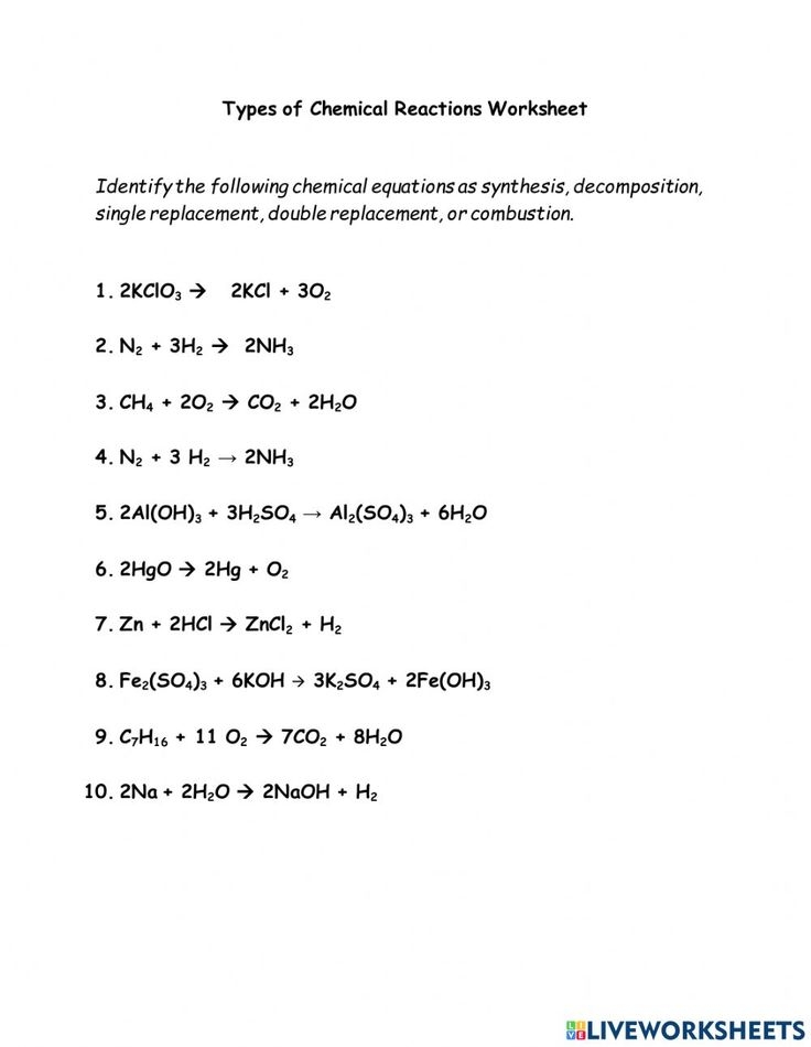 Chemical reactions are essential processes that occur in our everyday lives. Understanding the different types of chemical reactions is crucial for students studying chemistry. A chemical reactions types worksheet can help students practice and reinforce their knowledge of these reactions.