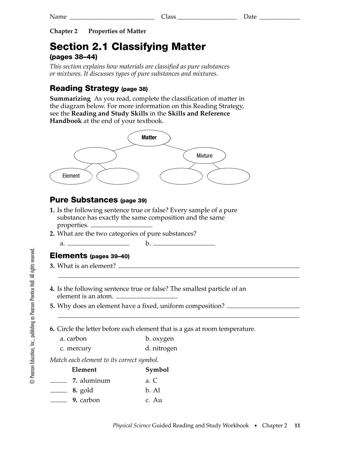 Classifying Matter Worksheet Key Slides Chemistry Docsity