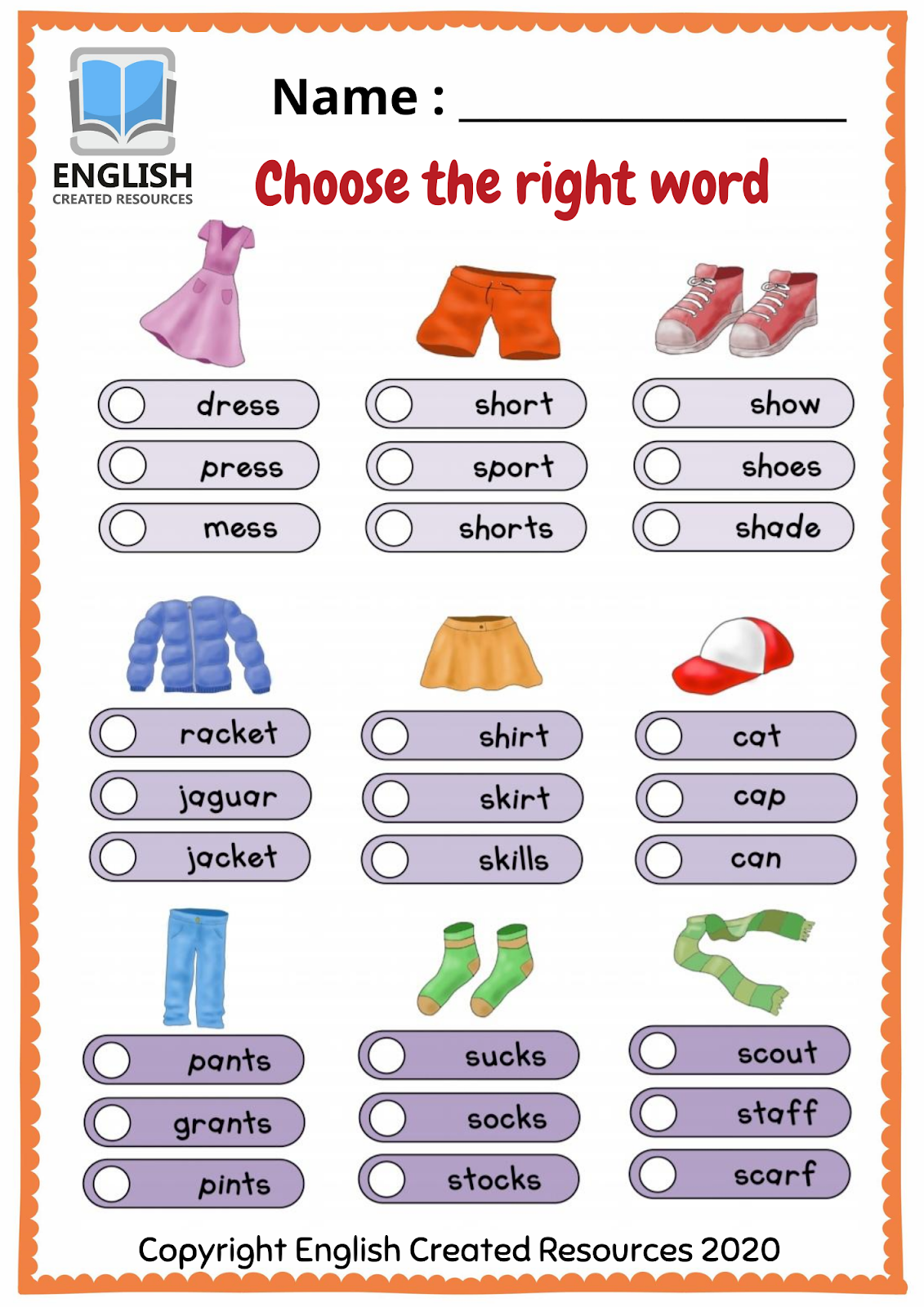 clothes worksheet
