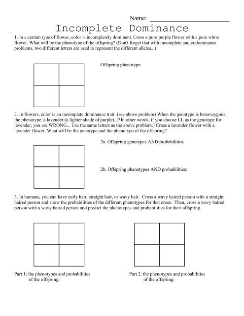 One way to practice and reinforce understanding of codominant and incomplete dominance is through worksheets. These worksheets typically present scenarios or problems where students are asked to determine the genotypes and phenotypes of individuals based on the given information. By working through these problems, students can apply their knowledge of genetics and inheritance to real-life examples, enhancing their understanding of these concepts.
