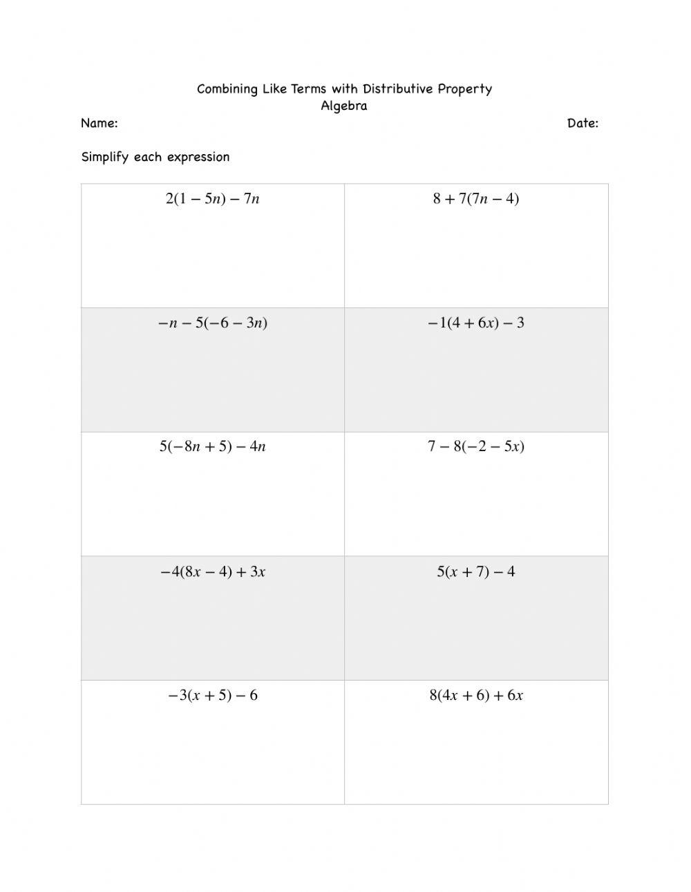 One effective way to reinforce these skills is through worksheets that provide practice problems for students to work on. These worksheets typically involve expressions that require combining like terms and applying the distributive property to simplify them.