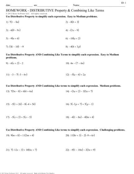 Combining Like Terms With Distributive Property Worksheet
