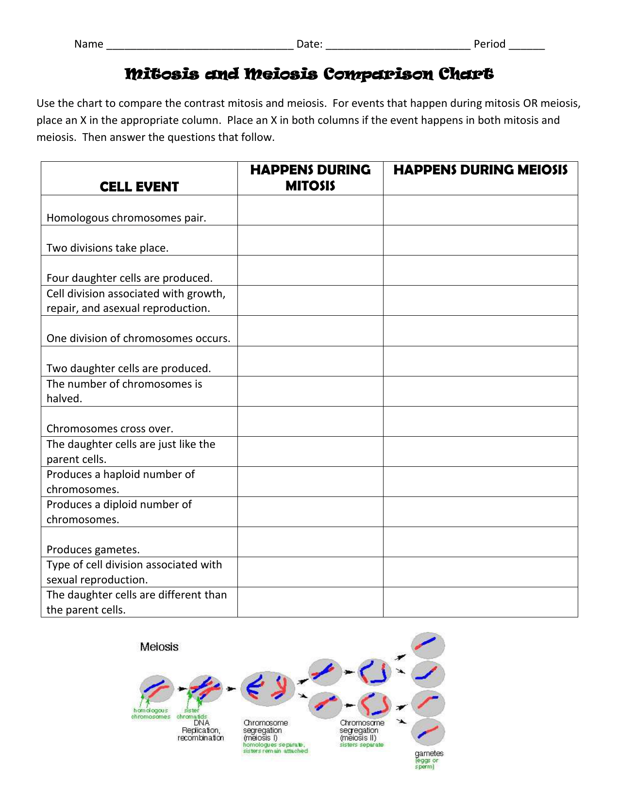 Download and Print comparison of mitosis and meiosis worksheet Listed below