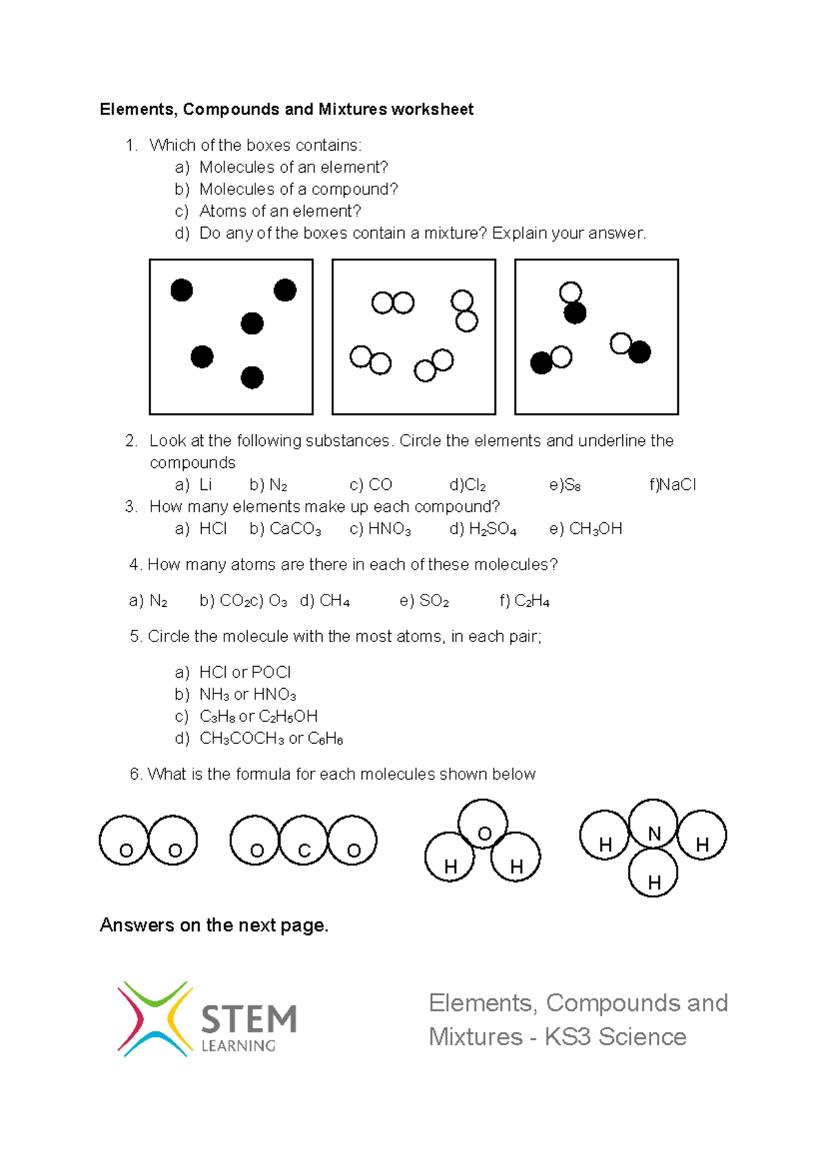 Furthermore, compounds mixtures and elements worksheets can incorporate real-world examples to help students see the relevance of these concepts in everyday life. For instance, students can analyze the ingredients of common household products to determine whether they are compounds or mixtures. This practical application can make the concepts more engaging and relatable.