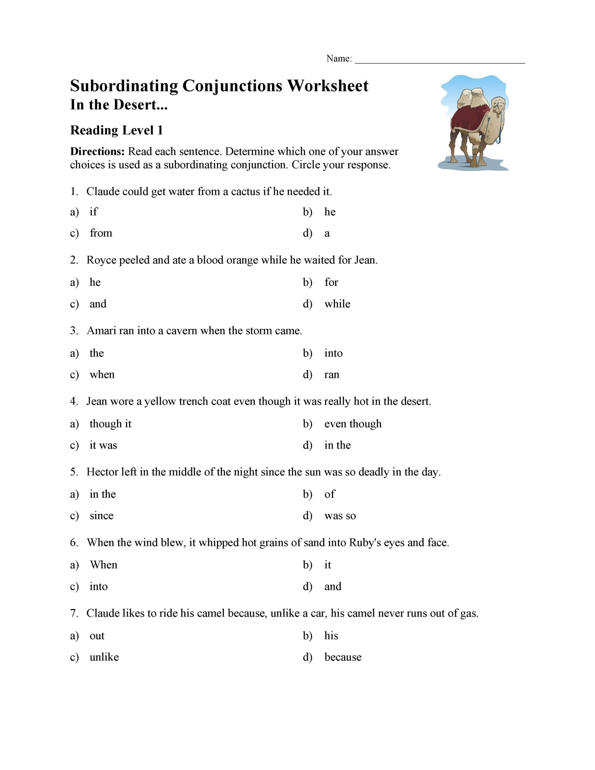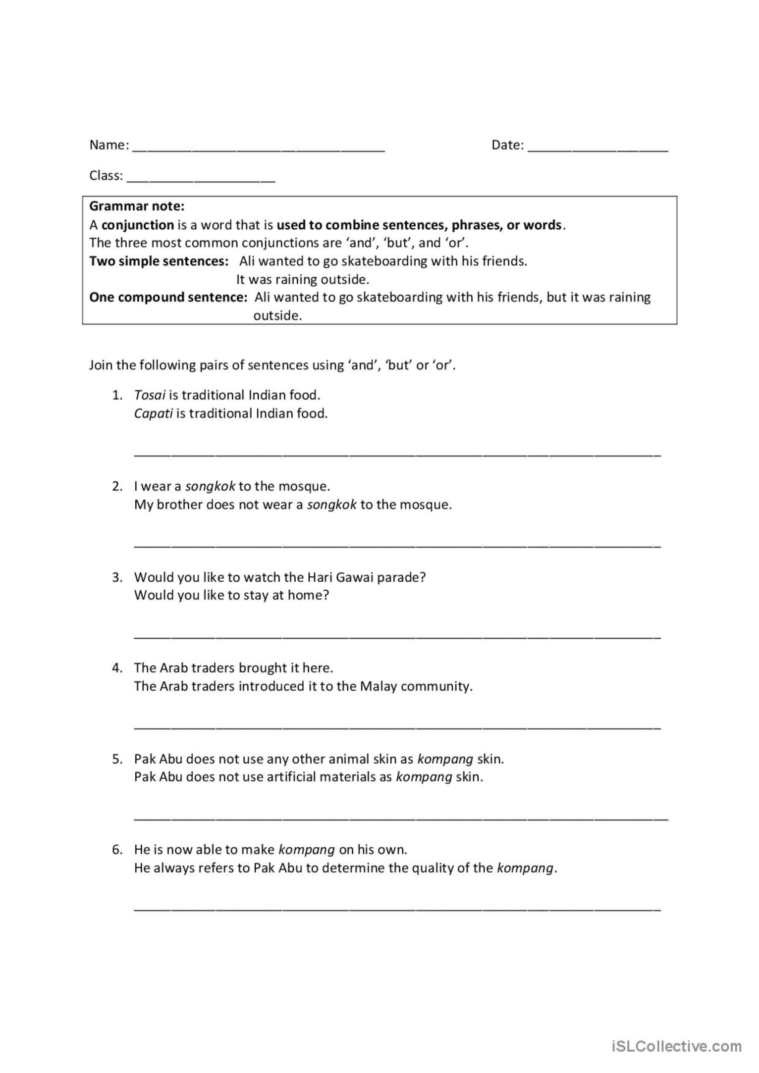 Conjunction Grammar Worksheets