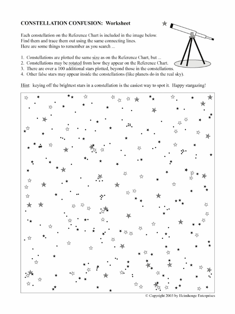 In conclusion, a constellation worksheet is a fun and educational way to learn more about the wonders of the night sky. Whether you’re a novice or a seasoned astronomer, completing a worksheet can enhance your understanding of constellations and deepen your appreciation for the beauty of the stars above. So grab a pencil, head outside on a clear night, and start exploring the mysteries of the universe through the art of constellation worksheets.